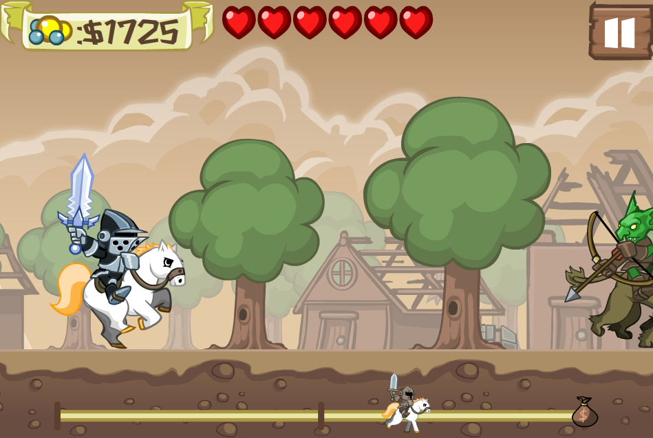 King's Rider is a running, action upgrades game. I want to start off by saying that I'm a big fan of this publisher. BezerkStudio has put out some amazing games, namely Bezerk Ball 2 and Frantic Frigates. This game kept the trend of a solid art style and good in-game animations.